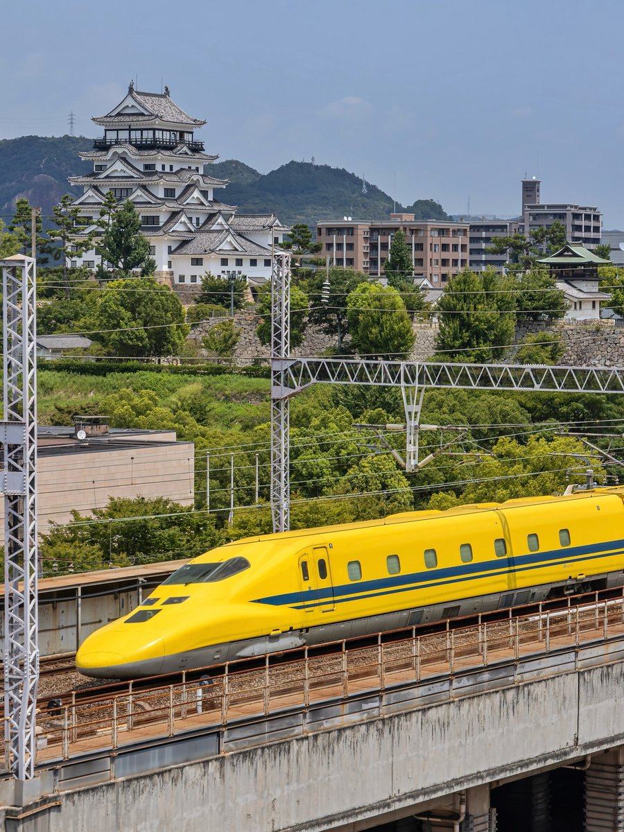 福山駅新幹線ホームから福山城天守を望む絶景を、2026年東海道・山陽新幹線全通記念日に福山…