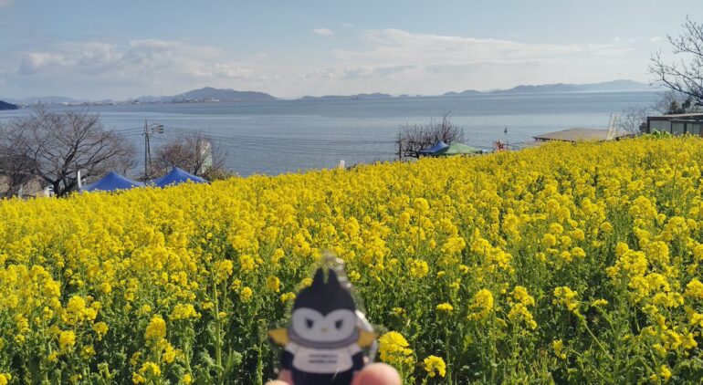 全国の菜の花名所と比較すると、田尻町は規模で劣るものの、瀬戸内海との一体感が独自の魅力です。翠波高原(愛媛)は高原ビューが特徴ですが、海景は田尻町が優位。閏住(伊予市)は列車通過がアクセント、笠岡湾は広大平坦型です。田尻町の強みは高台からの眺望とボランティアの温かみです。