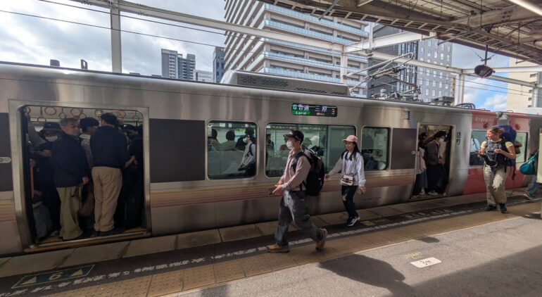 鉄道における混雑は、単に「乗れる・乗れない」だけでなく、ホームでの待機列の長さ、車内の圧迫による不快感、熱中症リスク、トラブル時の避難しにくさへと連鎖する。春先の気温変化が大きい日には、厚手のコートを着たまま車内に詰め込まれる状況が続き、体感としての負担が増す。投稿写真は静止画であるが、立席密度が高い区間ではわずかな加減速でも身体のバランスを崩しやすく、つり革や手すりへの依存度が上がる。こうした安全面の観点からも、定員を超えた乗車は許容されない。